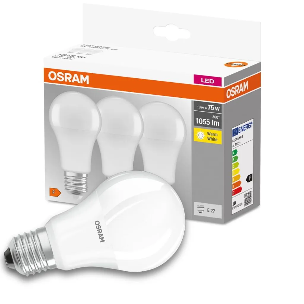 Osram LED Lampe Ersetzt 75W E27 Birne – A60 In Weiß 10W 1055lm 2700K 3er Pack