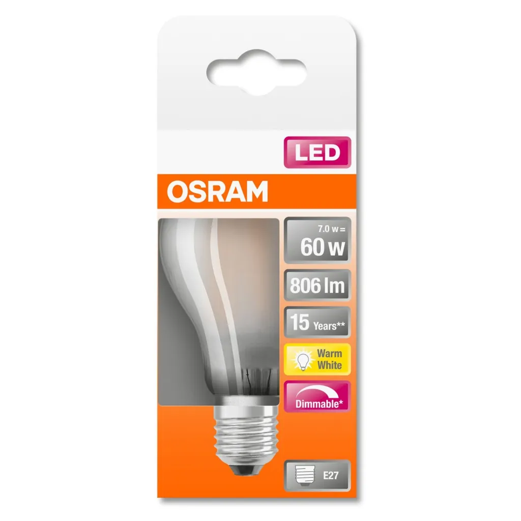 Osram LED Leuchtmittel Classic A60 E27 7W Warmweiß, Dimmbar, Weiß Matt