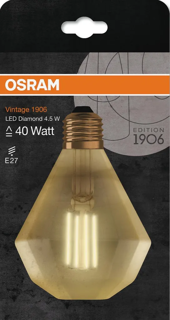 Osram LED Leuchtmittel Diamant Vintage 1906 E27 4,5W Warmweiß, Amber