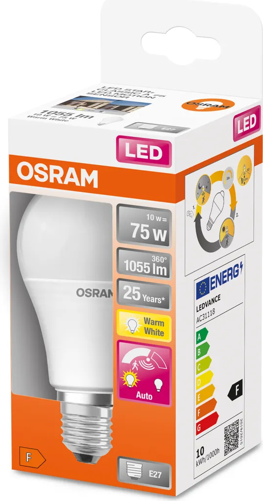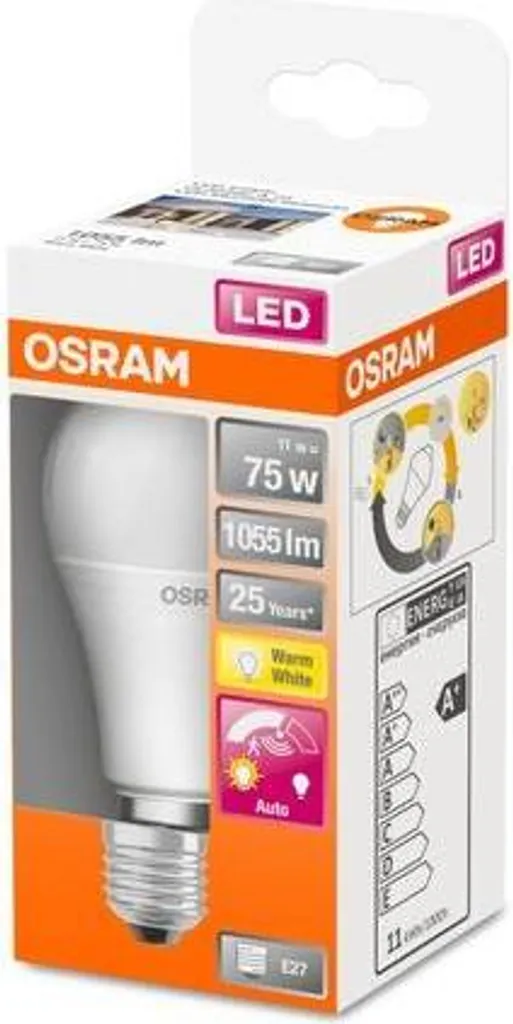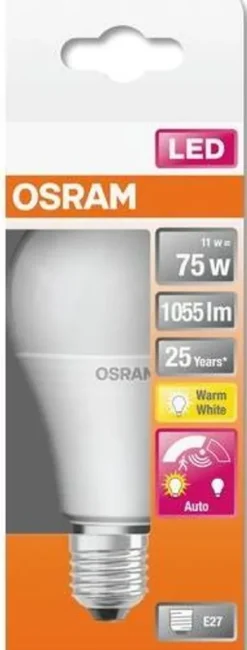 Osram LED Leuchtmittel Motion Sensor Classic E27 11W Warmweiß, Weiß Matt