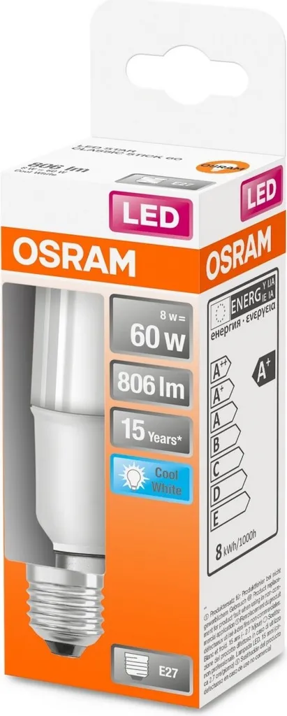 Osram LED Leuchtmittel Röhre Stick 8W = 60W E27 Matt 806lm Neutralweiß 4000K