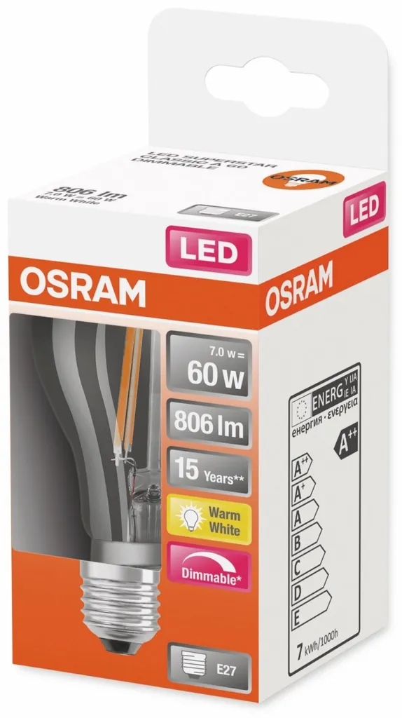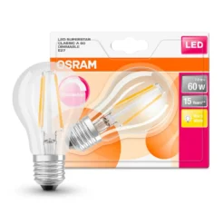 Osram LED Filament Birnenform A60 6,5W = 60W E27 Klar 806lm FS NeutralweiĆ 4000K Tageslichtsensor