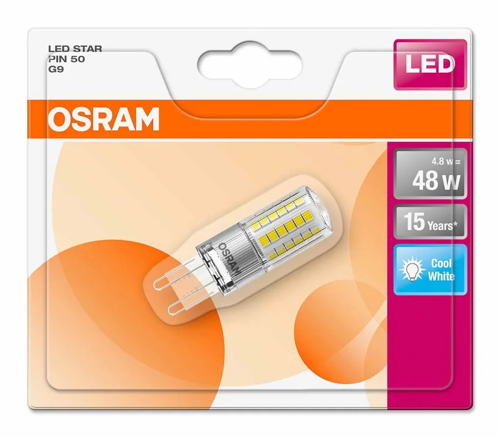 Osram LED Leuchtmittel Stiftsockellampe 4,8W = 48W G9 Klar 600lm 840 Neutralweiß 4000K 320°