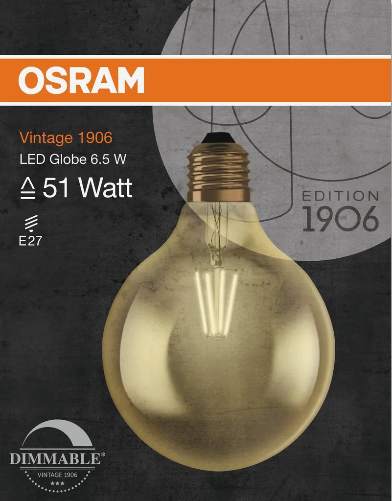 Osram LED Leuchtmittel Vintage 1906 Globe E27 6,5W Warmweiß Dimmbar