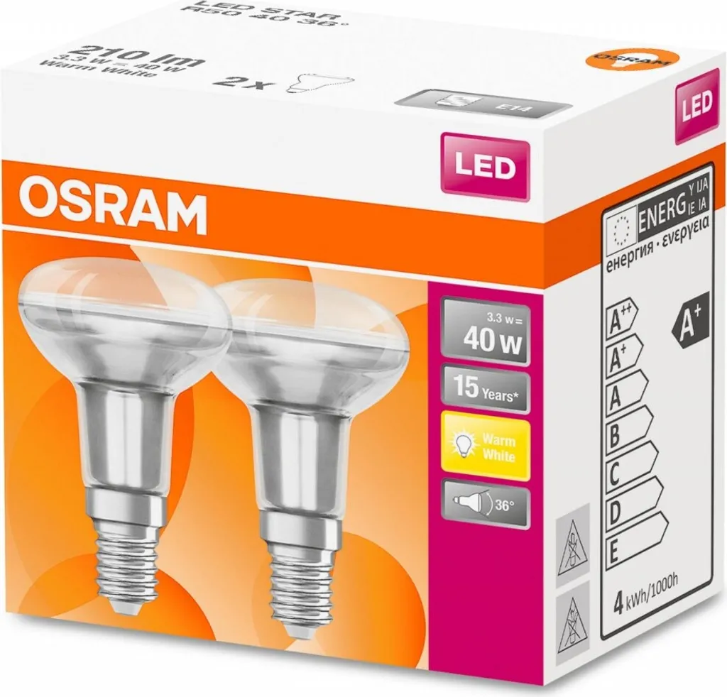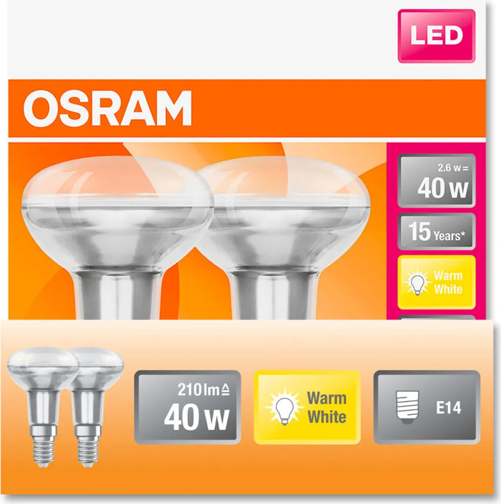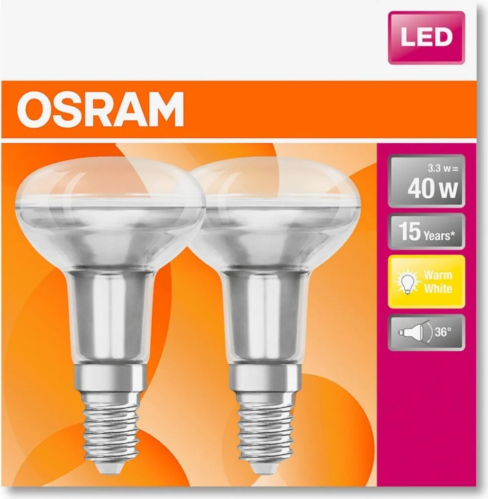 Osram LED Reflektor Star R50 40 E14 3,3W 2er Pack WarmweiĆ, Klar