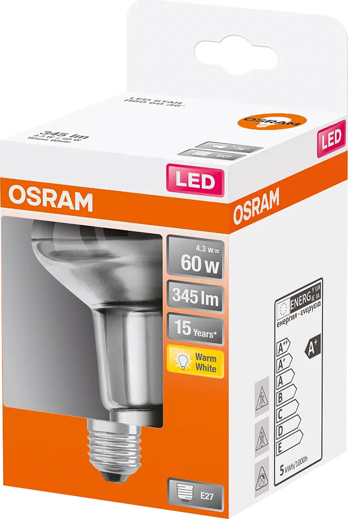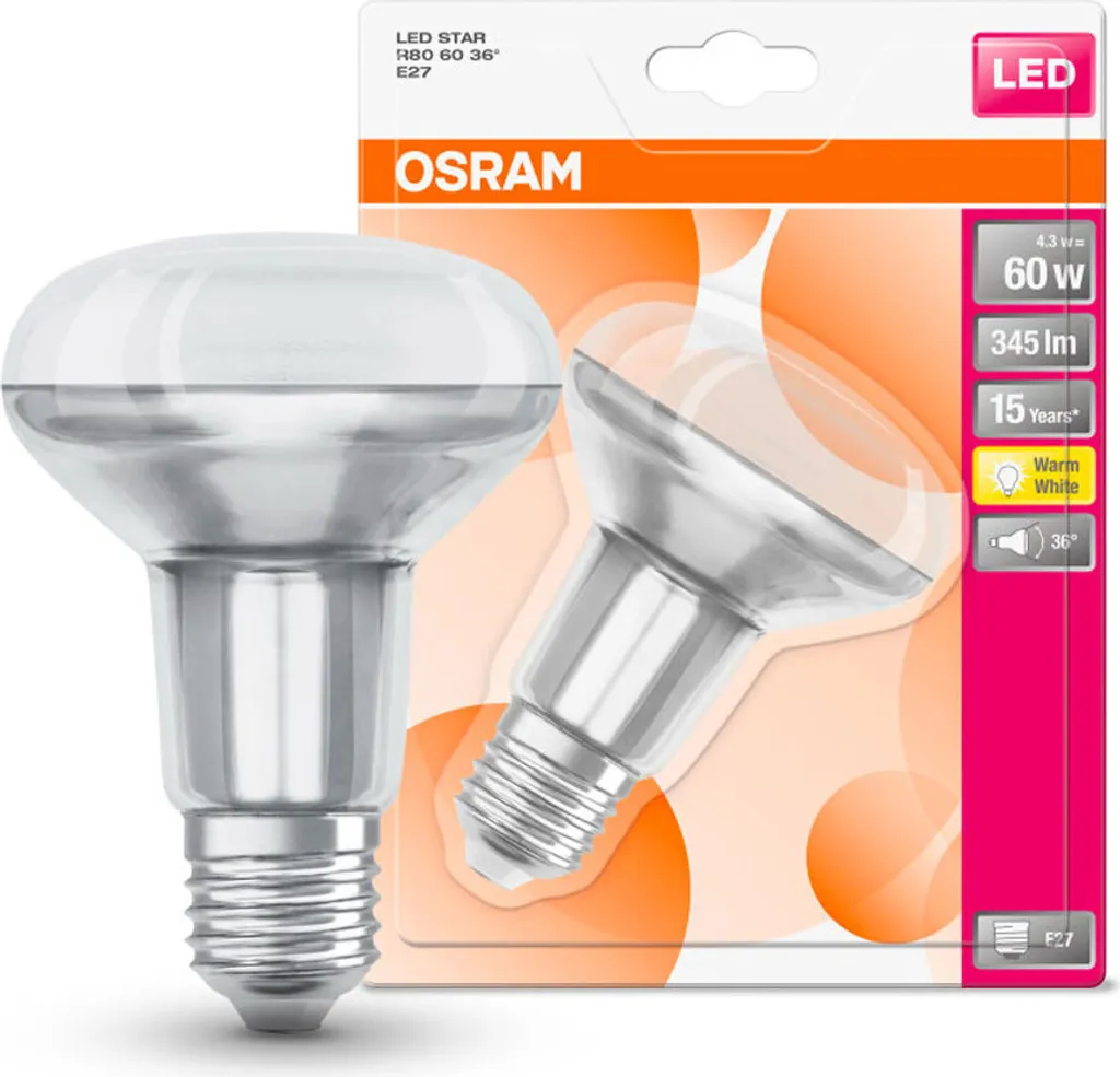 Osram LED Reflektor Star R80 60 E27 4,3W Warmweiß, Klar
