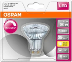 Schreibe die erste Rezension für „Osram LED Reflektor Super Star PAR16 80 GU10 8,3W Warmweiß, Dimmbar, Klar“ Antwort abbrechen