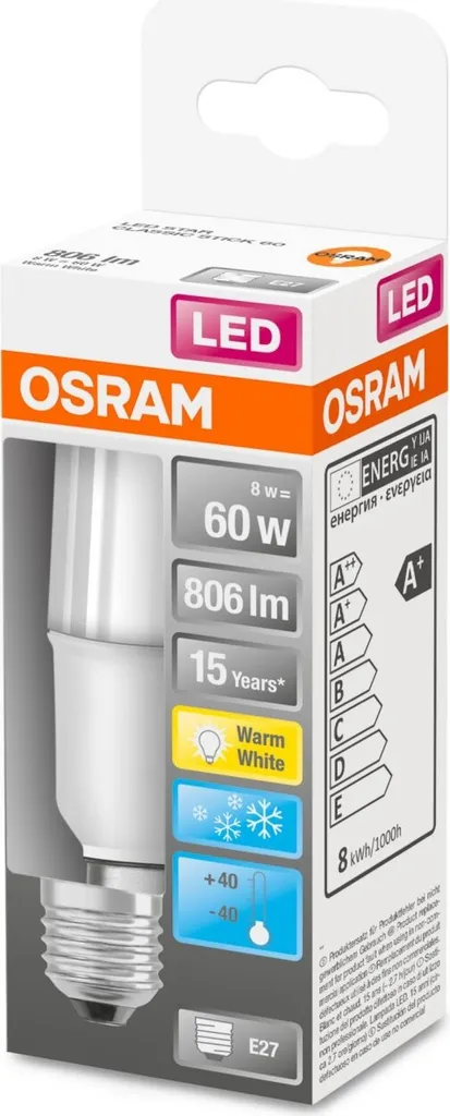 Osram LED Star Stick Leuchtmittel Röhre 8W = 60W E27 Matt 806lm FS Warmweiß 2700K