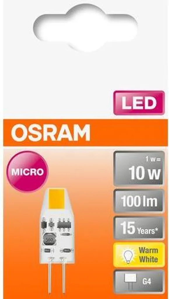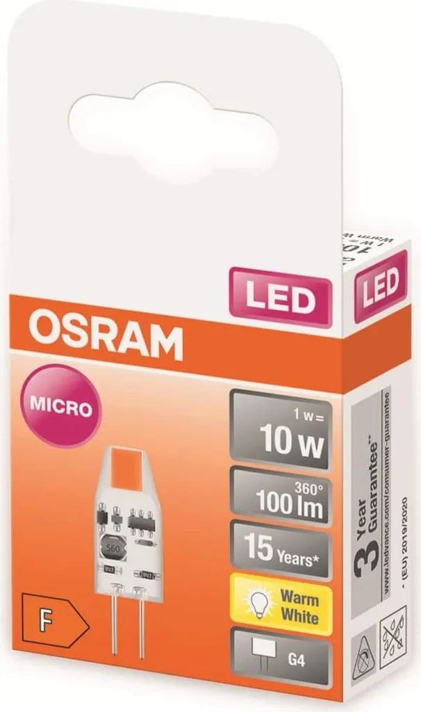 Osram LED Stiftsockelleuchte Micro 12V G4 1W Warmweiß, Klar