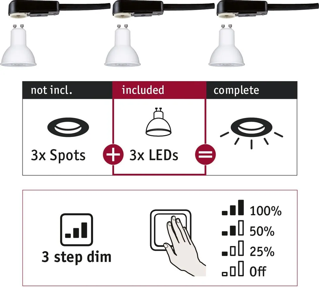 Paulmann EBL Choose 3er GU10 Set 3step Dim 3×6,5W 460lm 2700K 51mm
