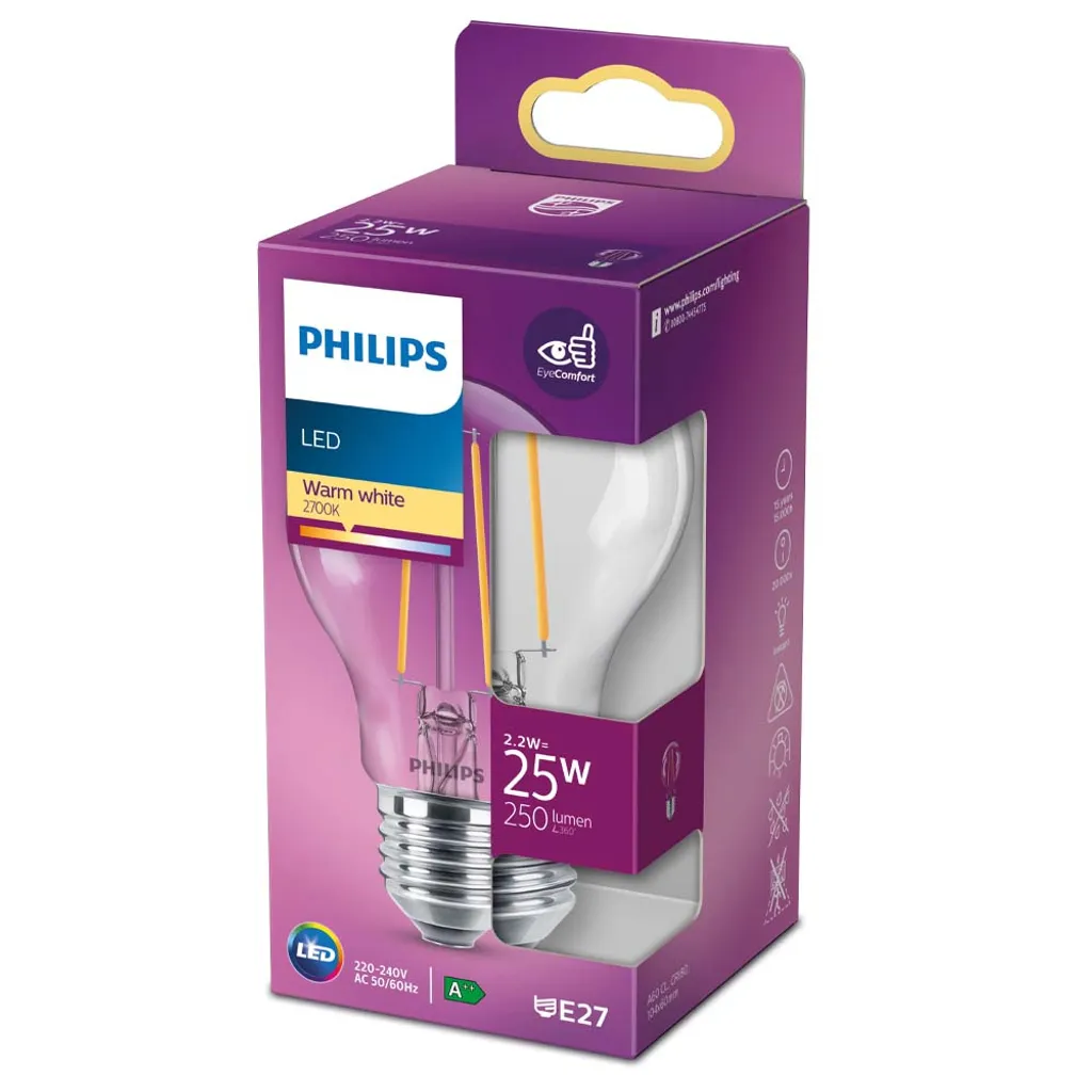 Philips LED Lampe Ersetzt 25W, E27 Standardform A60, Klar, Warmweiß, 250 Lumen, Nicht Dimmbar, 1er Pack