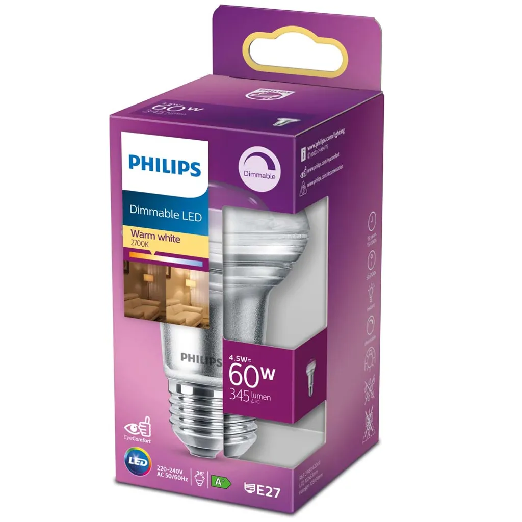 Philips LED Lampe Ersetzt 60W, E27 Reflektor R63, Warmweiß, 345 Lumen, Dimmbar, 1er Pack