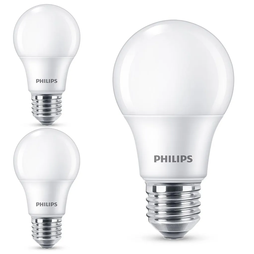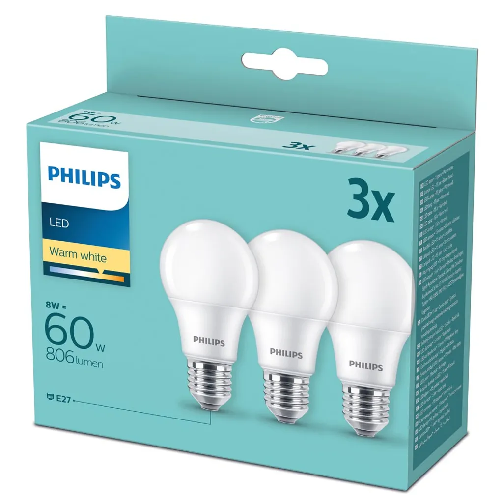 Philips LED Lampe Ersetzt 60W, E27 Standardform A60, Weiß, Warmweiß, 806 Lumen, Nicht Dimmbar, 3er Pack