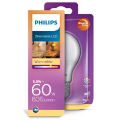 Philips LED WarmGlow Lampe Ersetzt 60W, E27 Standardform A60, Matt, Dimmbar, 1er Pack [Energieklasse A+]