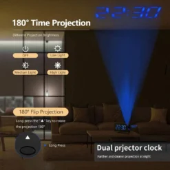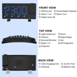 Projektionswecker, Wecker Digital Mit Projektion, Radiowecker Mit USB-Anschluss, Dual-Alarm, 5 Alarmtöne Mit 3 Lautstärke, 0-100% Helligkeitsdimmer, 4 Projektionshelligkeit, 30 FM Radio