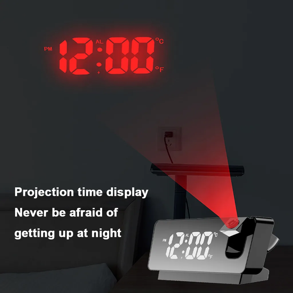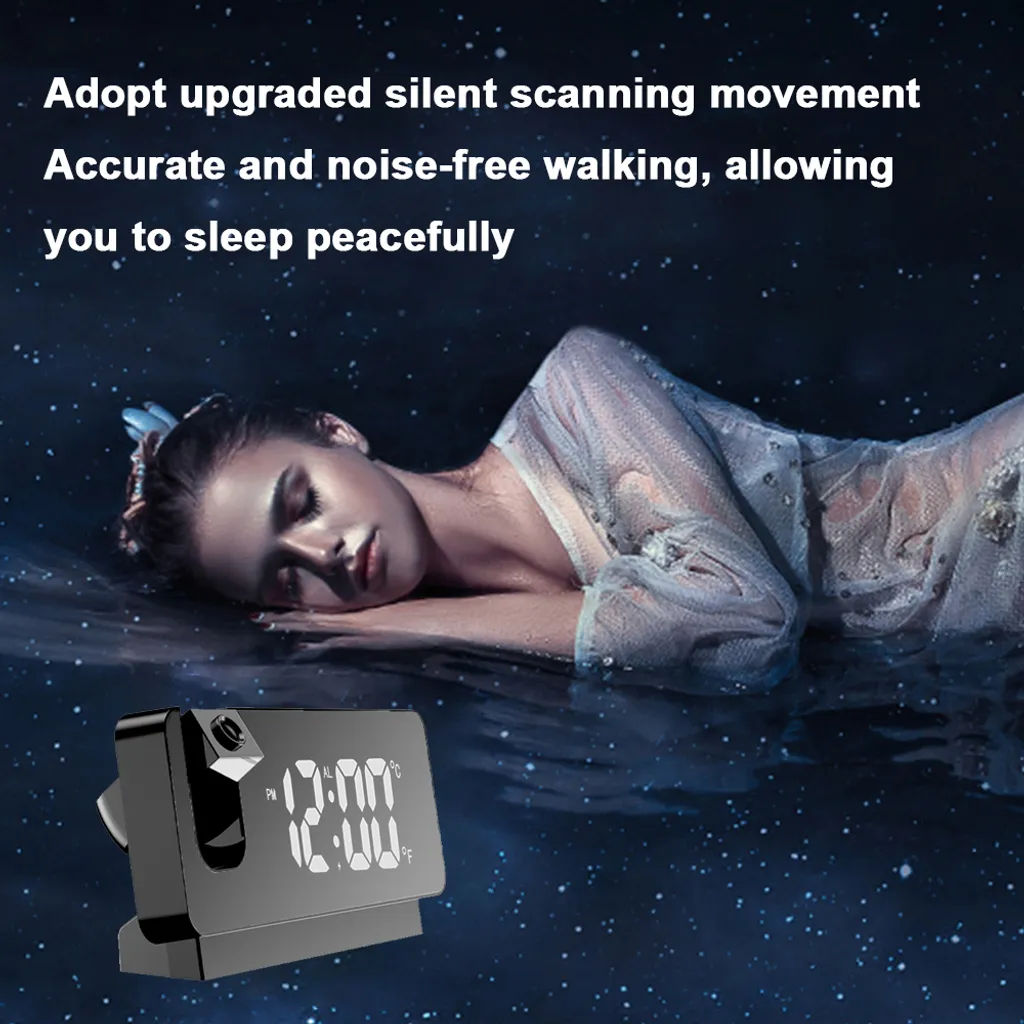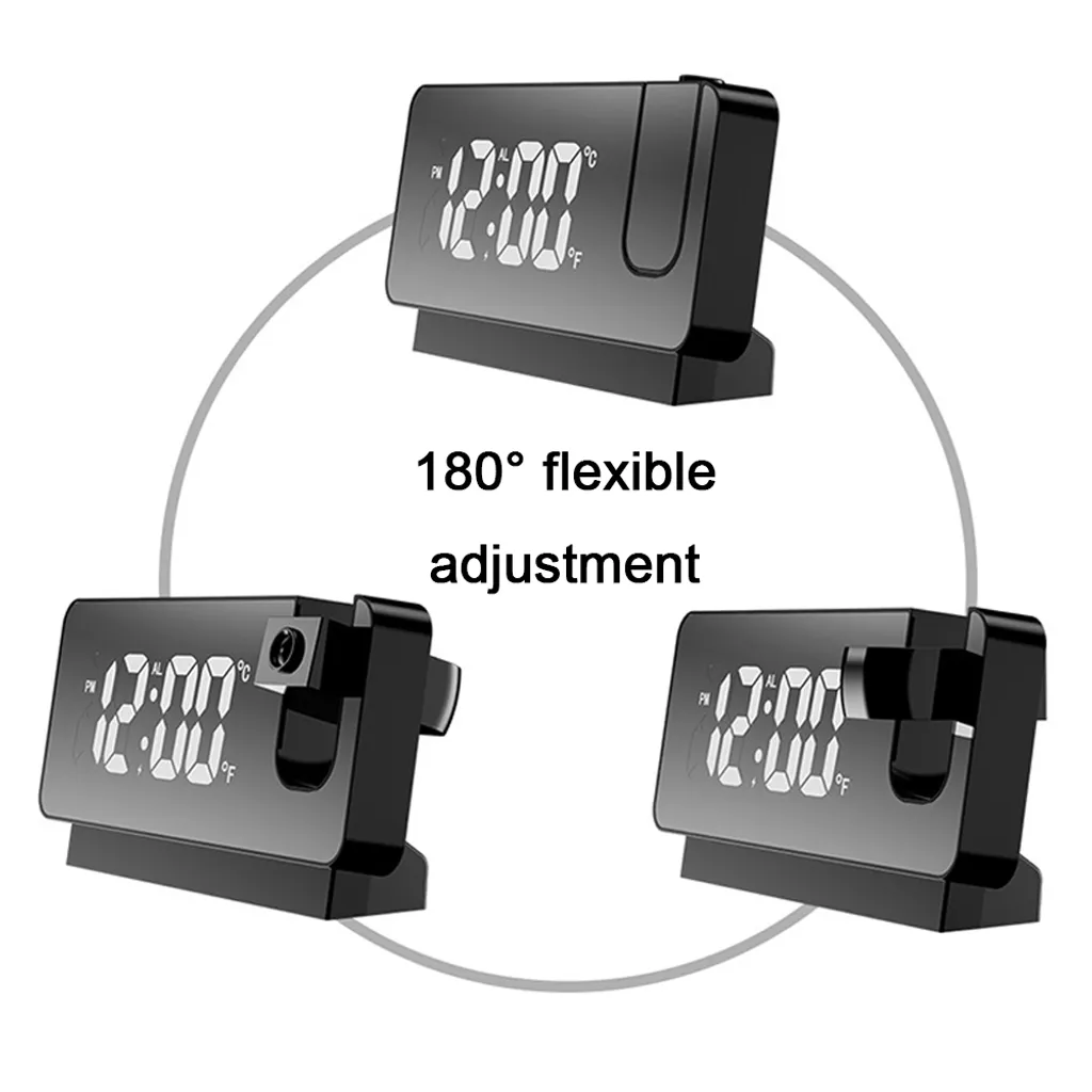Projektorwecker Für Schlafzimmer, Digitalwecker Mit 0-100% Dimmer Und 2 USB-Ladeanschlüssen, 180° Drehbarer Projektor, Doppelwecker, Snooze, Klares LED-Display, Digitaluhr Für Vielschläfer, Schwarz