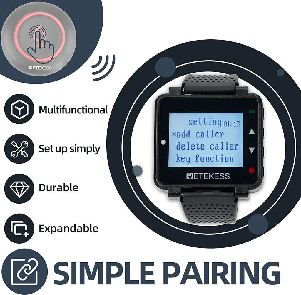 Retekess T128 Wireless Caregiver Pager Kellner Uhrenempfänger Für TD007 Und T117 Button Im Restaurant Hospital Nursing Home