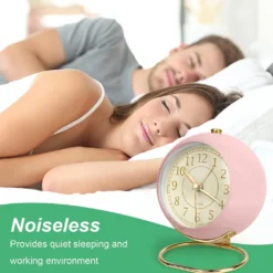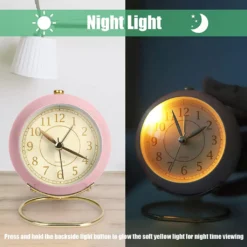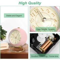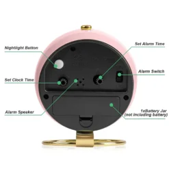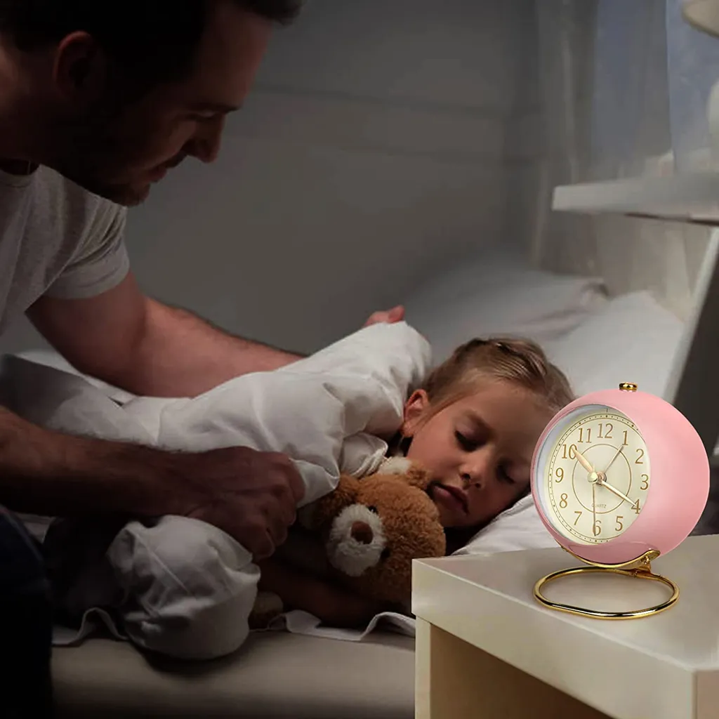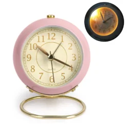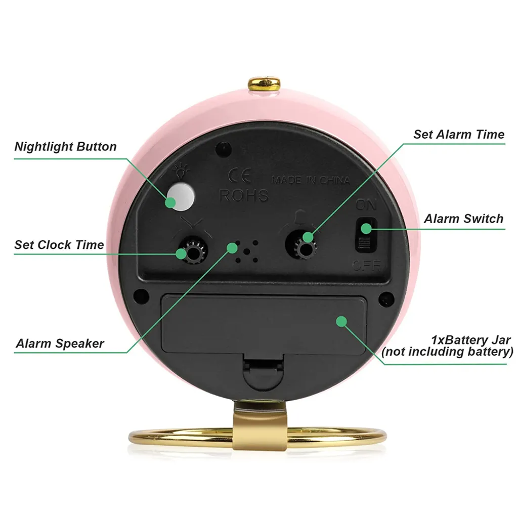 Super Leiser Wecker In 3 Farben, Runder Piepton-Wecker, Mit Nachtlicht, Batteriebetrieben, Einfaches Anbringen, Einfach Und Retro Für Schreibtisch, Schlafzimmer Und Heimdekoration,Pink