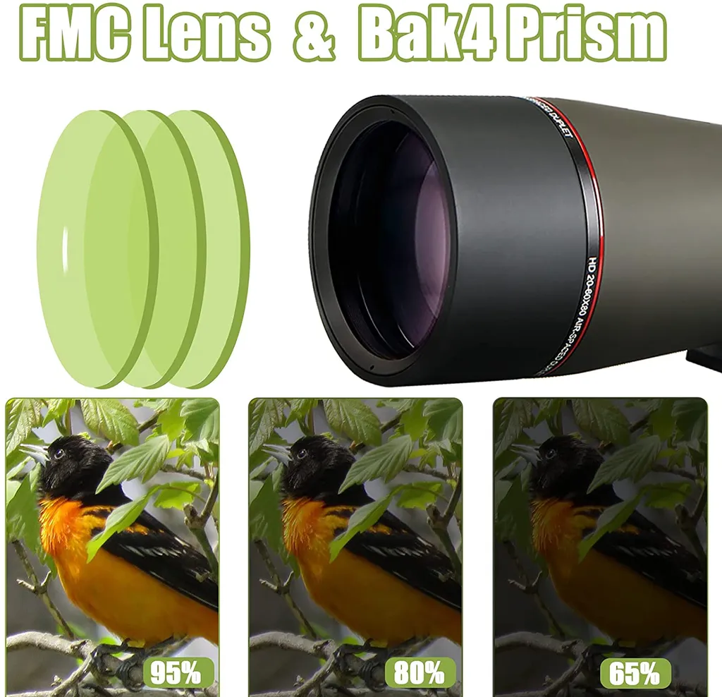 Svbony SV46 Spektive 20-60×80, FMC, BAK4 Porro, Dual-Speed-Fokus, Wasserdicht Beschlagfrei, Stativ Aus Aluminiumlegierung, Teleskop Für Sportschützen, Bogenschießen, Zuhause Oder Outdoor