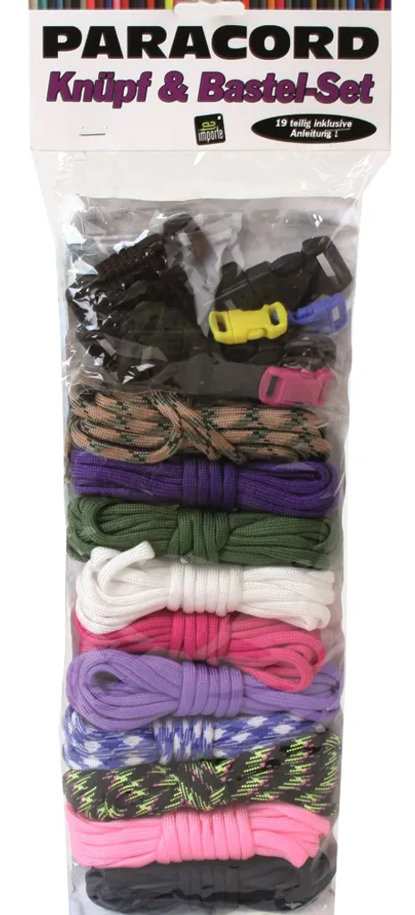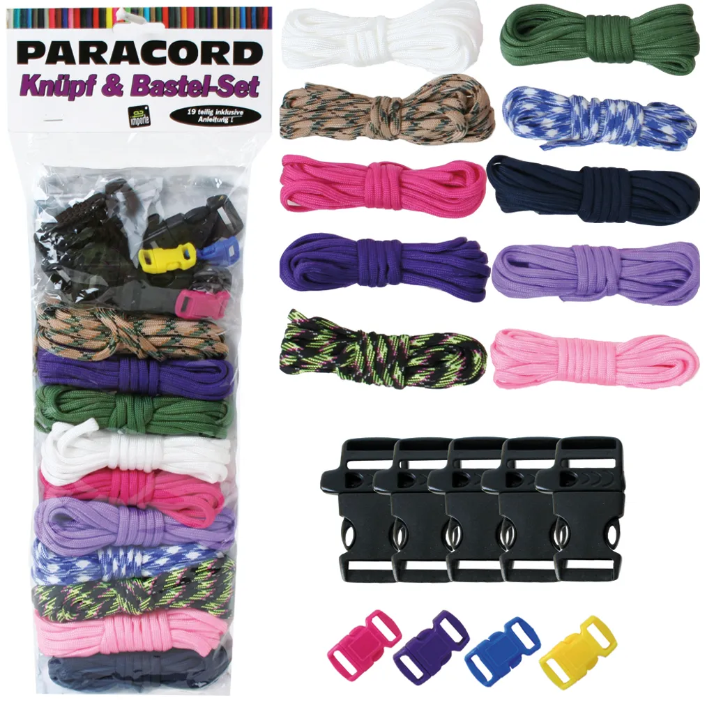 TE-Trend Paracord Seil Set 19-teilig Parachute Fallschirm Kernmantel Seil Bastelset Steckschliesser Armband Schlüsselanhänger