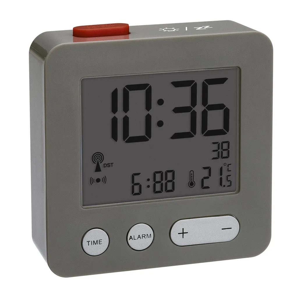 TFA Dostmann TFA Wecker, Funk, Digital, Anthrazit, Mit Beleuchtung, Datum Und Temperatur