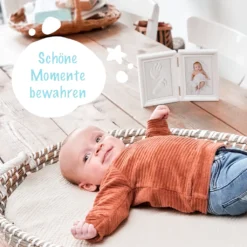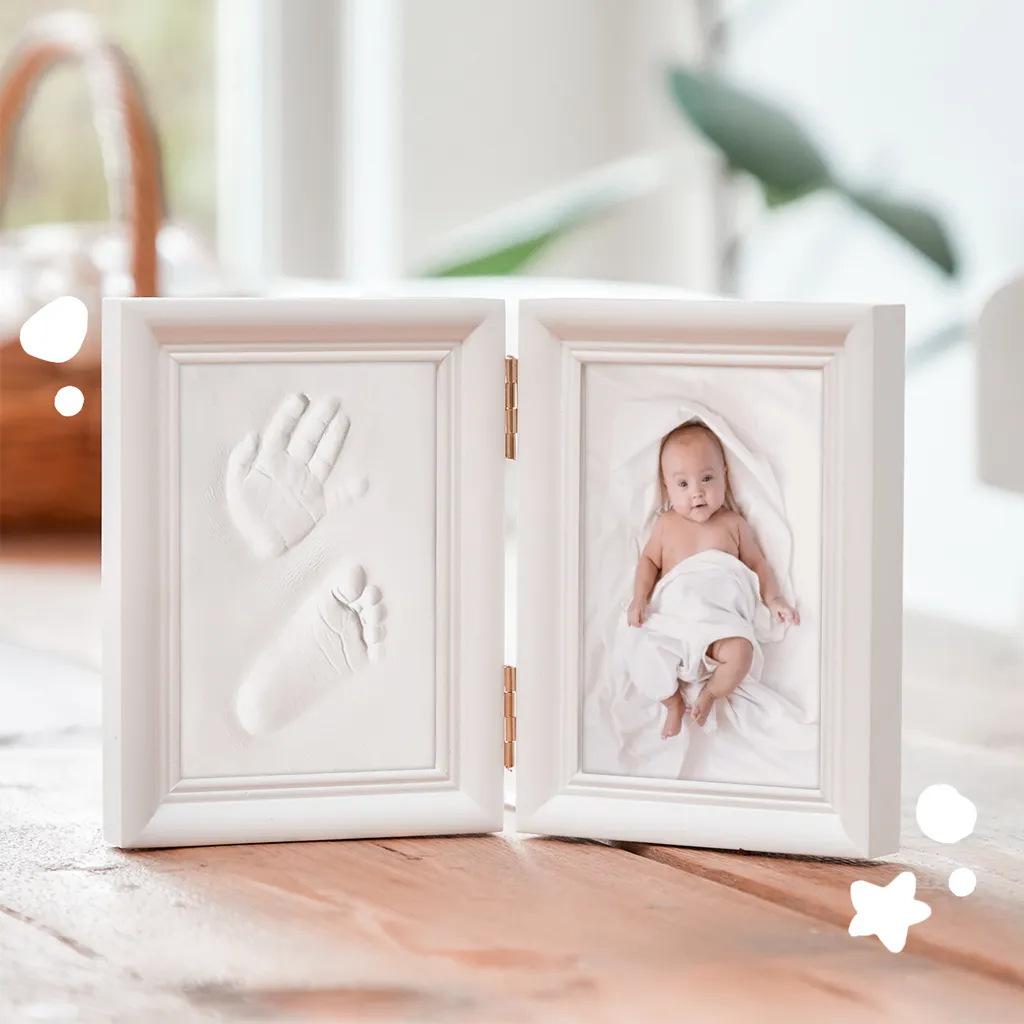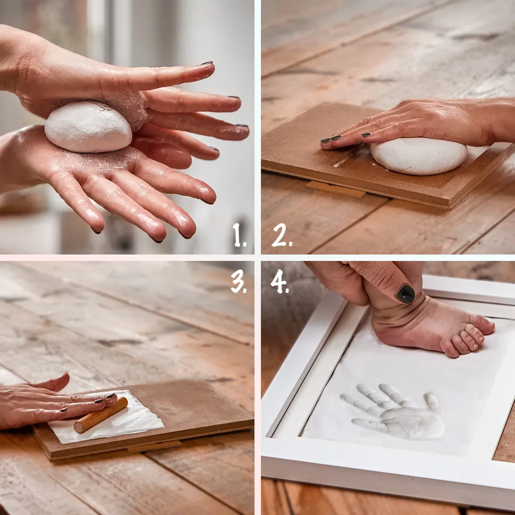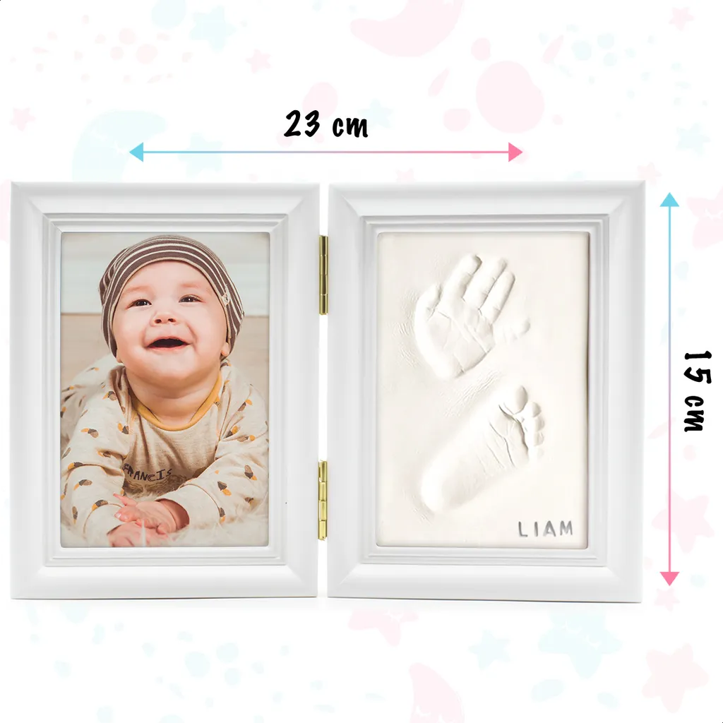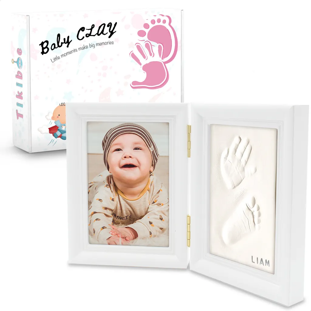 TIKIBOE Baby Bilderrahmen – Baby Geschenk Set Zur Geburt Für Junge & Mädchen – Ton Handabdruck & Fussabdruck – 3D Collage – Inkl. Farbrahmen & Ausroller – Muttertag Geschenke