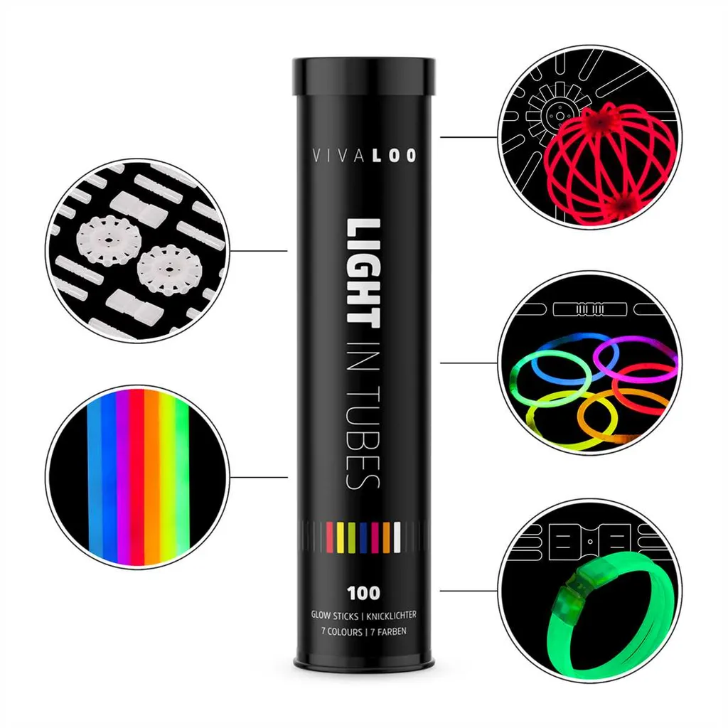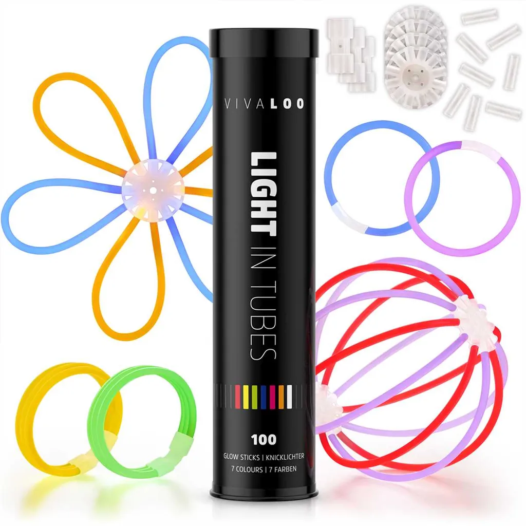 Vivaloo Knicklichter – Festival Ausrüstung, Party Deko, Neon-Leuchtstäbe, 7 Farben, 100er Set