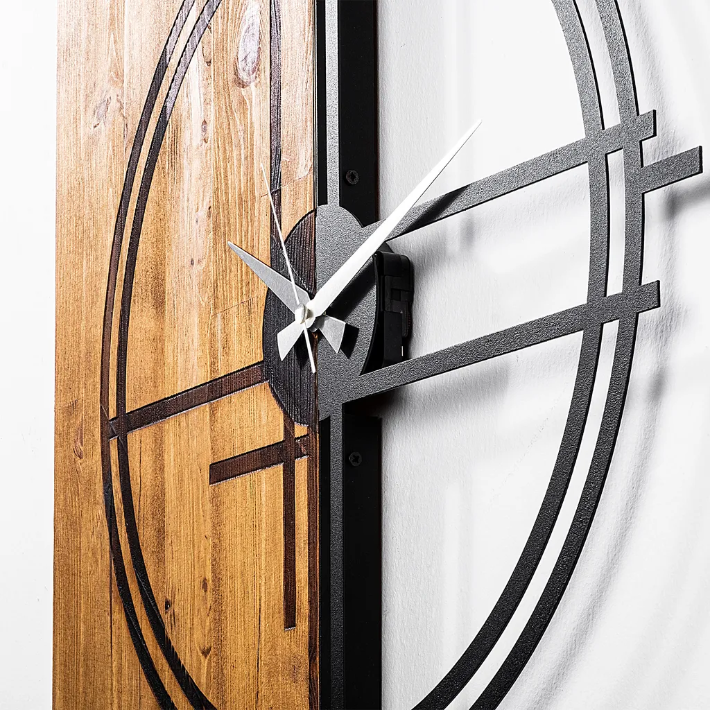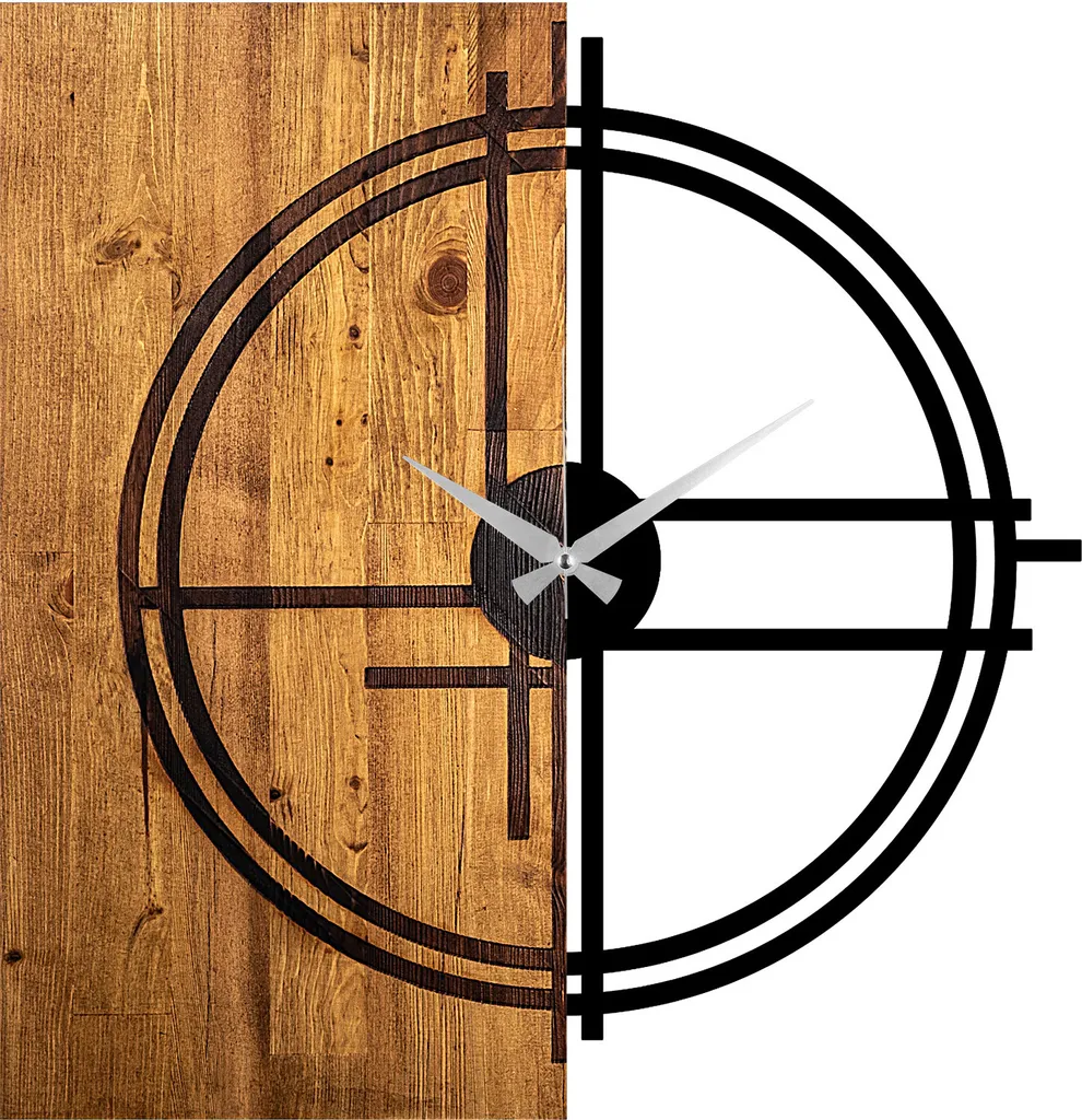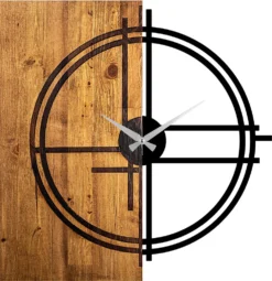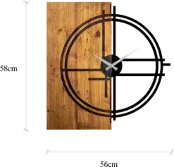 Wallity, Wooden- TNL1138, Leichte,Walnuss, Wanduhren, 56 X 3 X 58 Cm, 100% Holz (Dicke: 3 Cm) / Metall (Dicke: 1