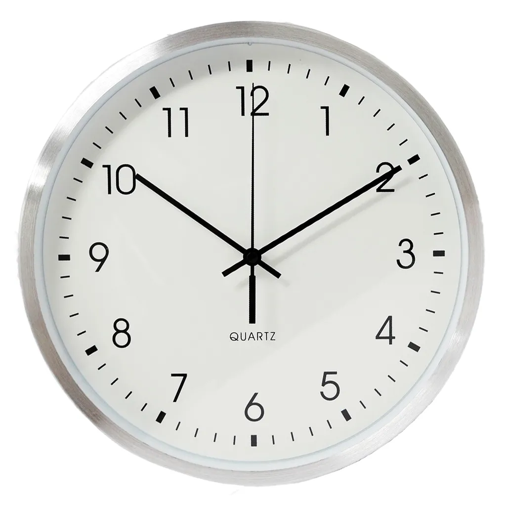 Wanduhr Analog Quartz Ø 25 Cm Ziffernblatt Zahlen Aluminium Silber Rund