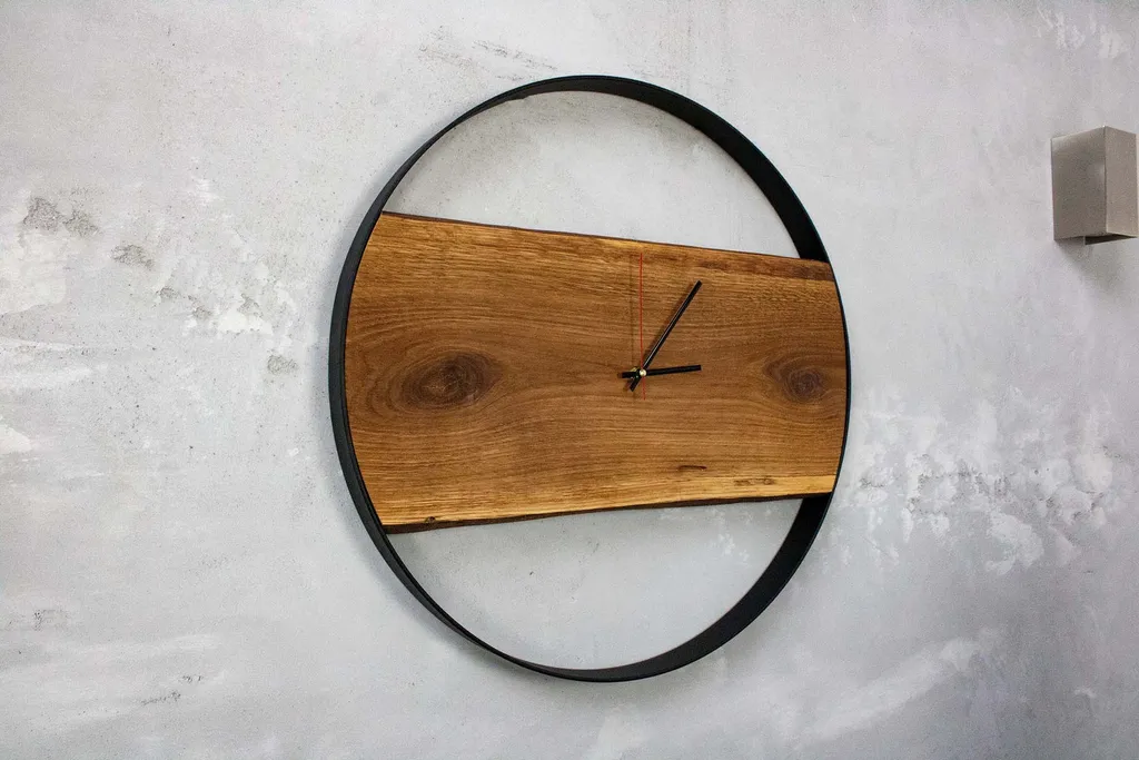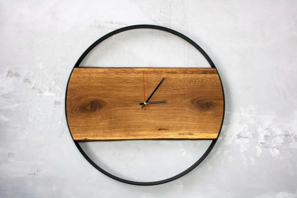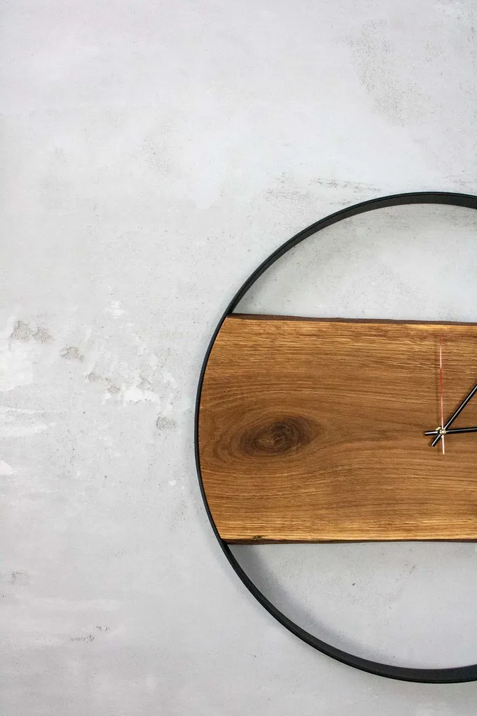 XXL Wanduhr Mit Stahlrahmen Aus Massiver Eiche Ø 58 Cm Von Holz4home® : Ø 58